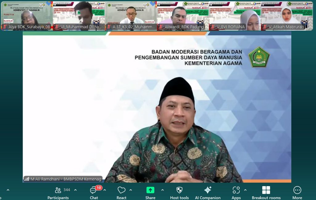 Ceramah Prof. Ali menjadi bagian penting dari Pelatihan Dasar CPNS Kementerian Agama Tahun 2025, yang digelar atas kolaborasi BDK Surabaya, BDK Padang, dan BDK Semarang. Meski dilaksanakan secara daring, kegiatan ini berlangsung interaktif dan penuh antusiasme. Para CPNS dari berbagai satuan kerja mengikuti jalannya acara dengan serius, mengingat materi yang disampaikan sangat relevan dengan kebutuhan ASN masa kini.