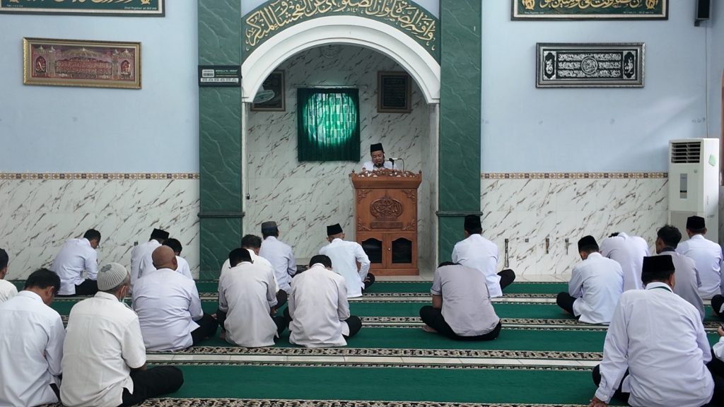 Pada kesempatan Selasa siang itu, Dr. H. Jamal, M.Pd., Widyaiswara Ahli Utama, mendapat jadwal untuk menyampaikan tausiyah bertema “Kuasa Allah di Balik Segala Peristiwa.” Kultum diikuti seluruh ASN, termasuk unsur pimpinan yang turut berjamaah.