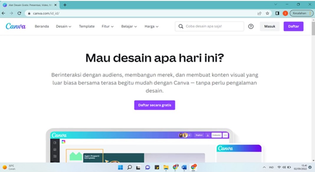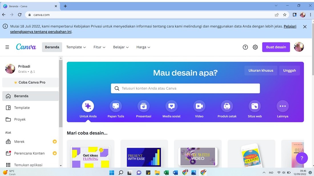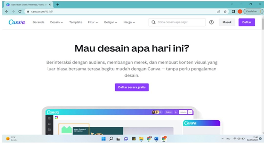 Tampilan yang akan tampak setelah Anda akses canva.com