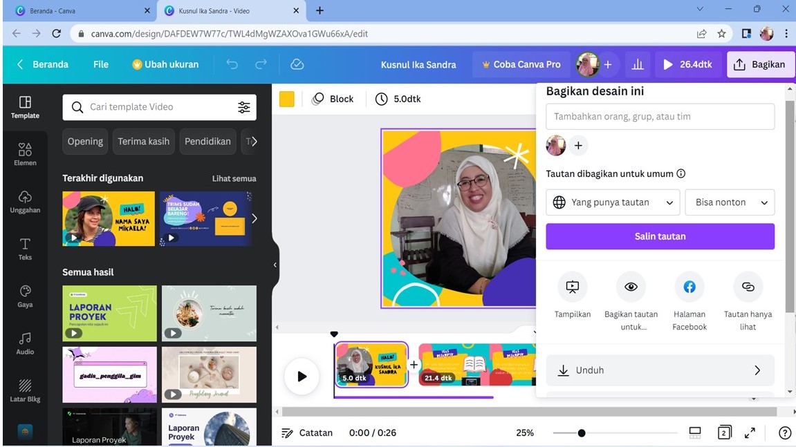 Aplikasi Canva bisa diakses di web Canva.com dan untuk membukanya bisa melalui Mac, Windows, Android, dan IOS. Dengan kemudahan akses tersebut kita bisa membuat video pembelajaran melalui laptop maupun hp.
