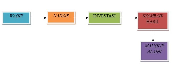 Waqif sebagai pihak yang mewaqafkan harta benda miliknya, akan di terima oleh Nadzir, sebagai pihak yang menerima harta benda Waqaf dari Waqif untuk dikelola dan dikembangkan sesuai dengan peruntukannya. Pengelolaan secara produktif melalui berbagai instrumen investasi, sehingga mendapatkan syamrah/hasil (return), yang kemudian retrun ini dimanfaatkan oleh mauquf alaihi.