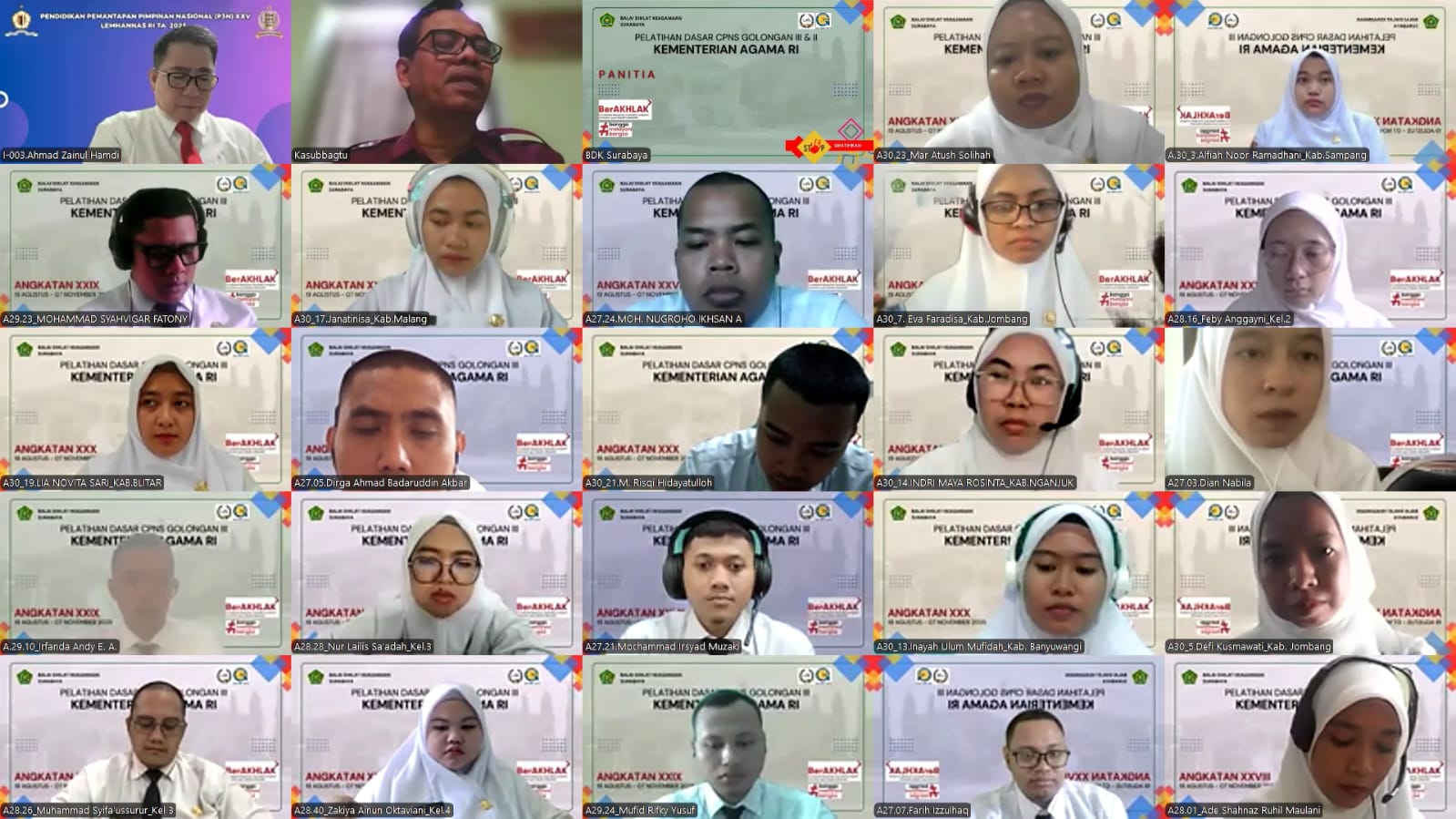 Surabaya – Pegawai negeri sipil (PNS) di lingkungan Kementerian Agama dituntut untuk menjadi teladan di tengah masyarakat. “Konsekuensi menjadi PNS adalah selalu diintai masyarakat, karena pegawai Kementerian Agama selalu menyandang agama di pundaknya,” tegas Sekretaris Badan Moderasi Beragama dan Pengembangan SDM Kemenag RI, Ahmad Zainul Hamdi, saat mengisi materi Muatan Teknis Substansi Lembaga (MTSL) pada Pelatihan Dasar (Latsar) CPNS Kementerian Agama di Balai Diklat Keagamaan (BDK) Surabaya secara online, Rabu (20/8/2025).