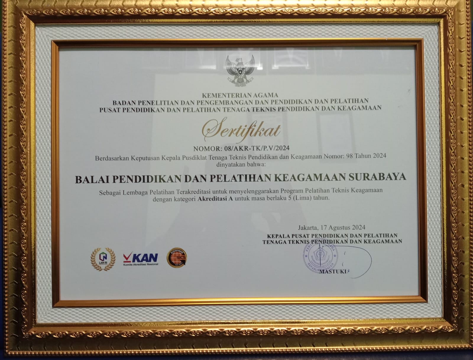 BDK Surabaya Sukses Raih Akreditasi A dalam Pelatihan Tenaga Teknis Pendidikan dan Keagamaan
