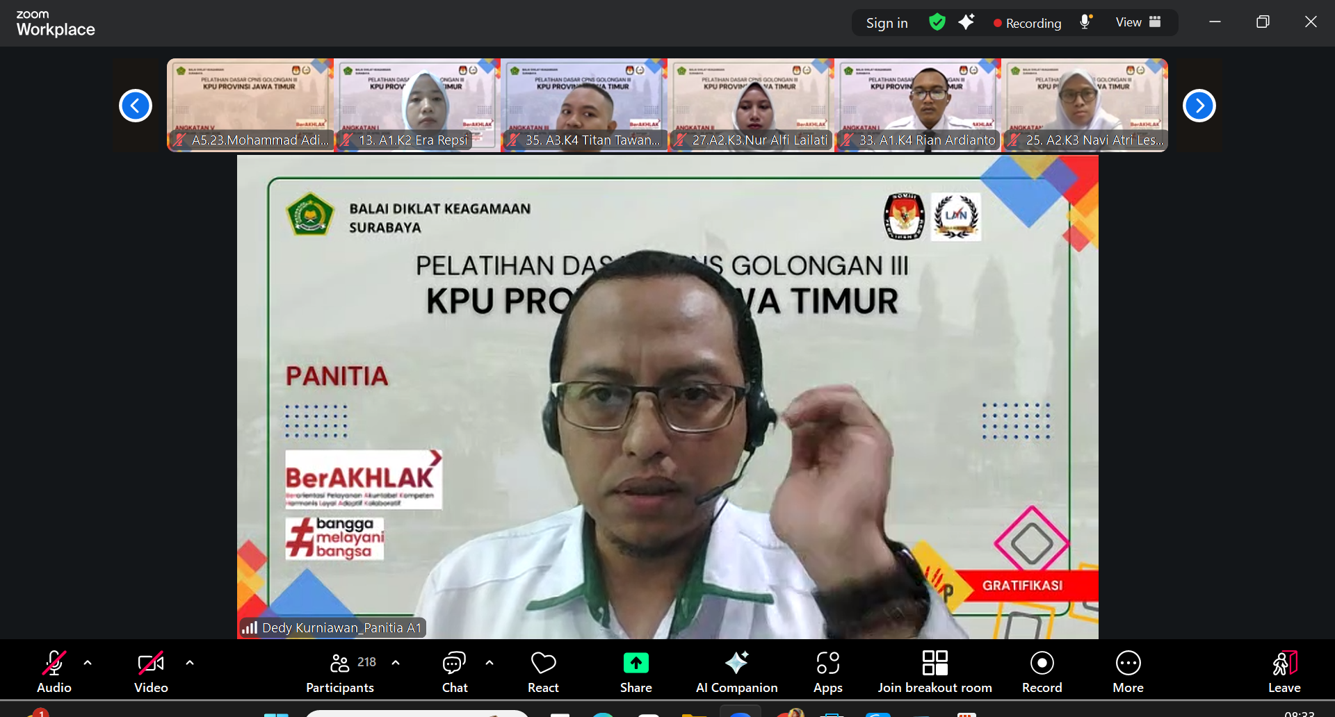 Sesi dilanjutkan dengan pemaparan teknis oleh Dedy Kurniawan. Ia fokus pada penguasaan media pembelajaran digital yang akan digunakan selama masa pelatihan, yaitu aplikasi Zoom untuk sesi interaksi langsung (Synchronous) dan LMS BDK Surabaya untuk sesi belajar mandiri (Asynchronous).