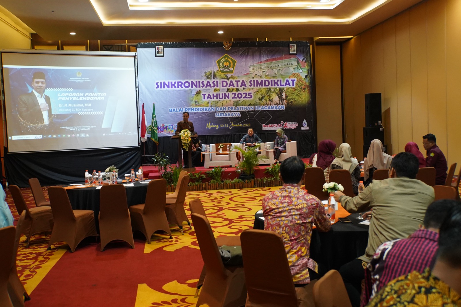 Surabaya – Balai Diklat Keagamaan (BDK) Surabaya menggelar kegiatan Kick Off Awal Tahun: Sosialisasi dan Silaturahmi dalam Sinkronisasi Data Simdiklat pada Kamis, (30/1/25). Acara yang dimulai pukul 16.00 WIB ini diawali dengan laporan penyelenggaraan yang disampaikan oleh Kepala Sub Bagian Tata Usaha BDK Surabaya, Dr. H. Muslimin, M.M. Acara ini dibuka secara resmi oleh Kepala Balai Diklat Keagamaan Surabaya, Dr. H. Japar, M.Pd.