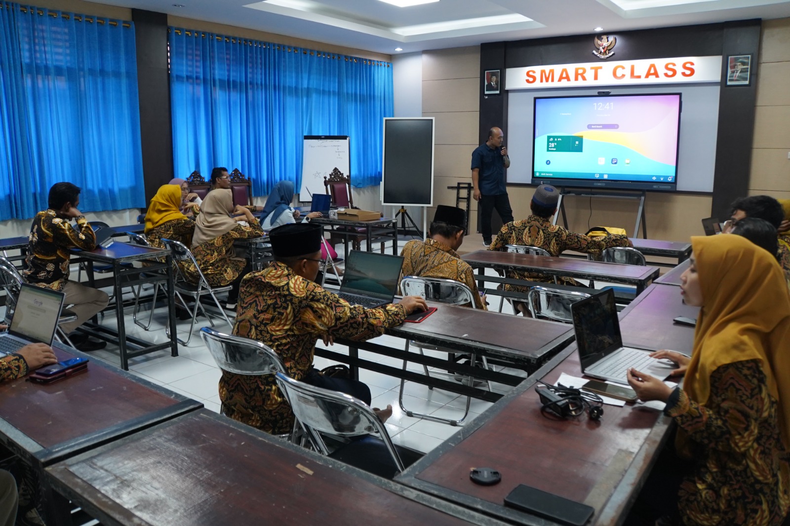 Surabaya, (6/3/25) – Balai Diklat Keagamaan (BDK) Surabaya terus berinovasi dalam mendukung pembelajaran berbasis teknologi. Pada Kamis, (6/3/25), BDK Surabaya menggelar sosialisasi product knowledge dan pengoperasian layar interaktif di Kelas J1, yang dikembangkan sebagai “Smart Class” dengan fasilitas teknologi mutakhir.