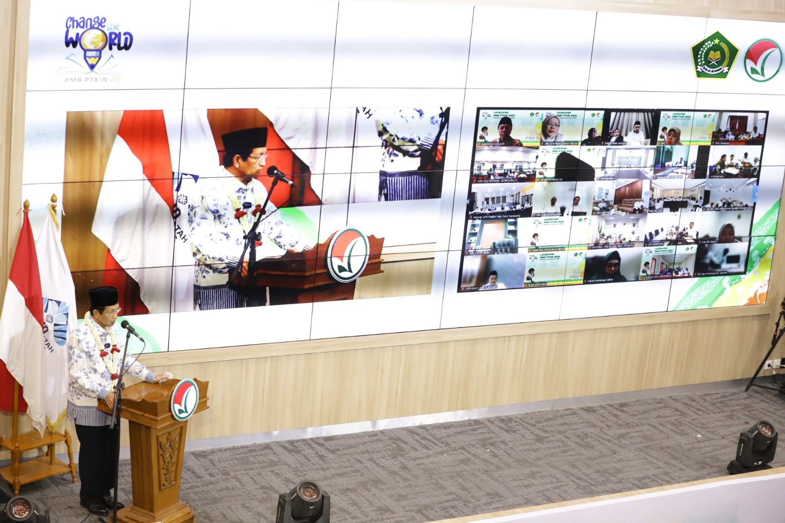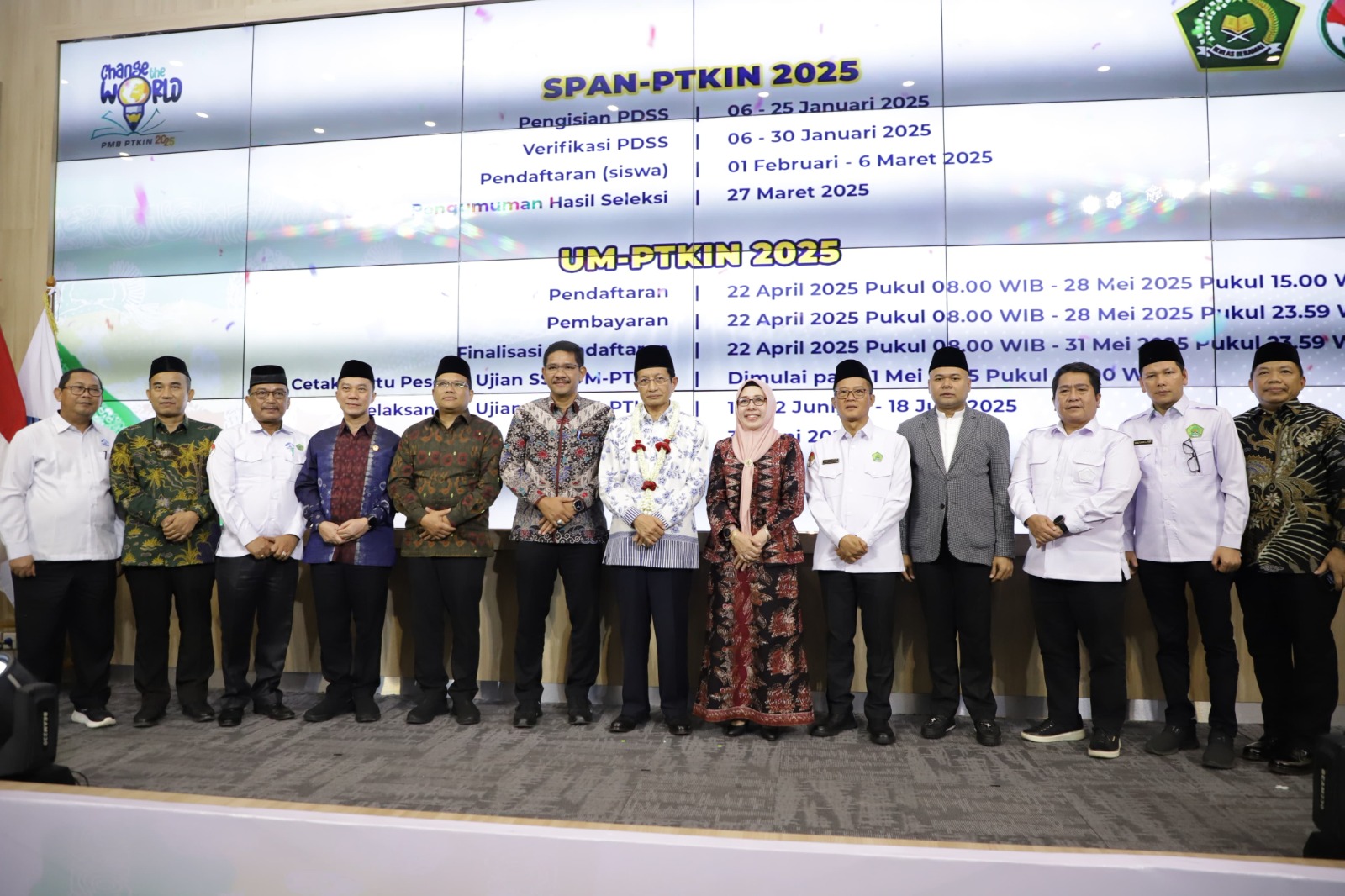 Menteri Agama (Menag) Nasaruddin Umar membuka Penerimaan Mahasiswa Baru (PMB) di 58 Perguruan Tinggi Keagamaan Islam Negeri (PTKIN) 2025. Launching PMB PTKIN 2025 bertema “Change the World” dilaksanakan di Kampus Jakabaring UIN Raden Fatah, Palembang, Sumatera Selatan.