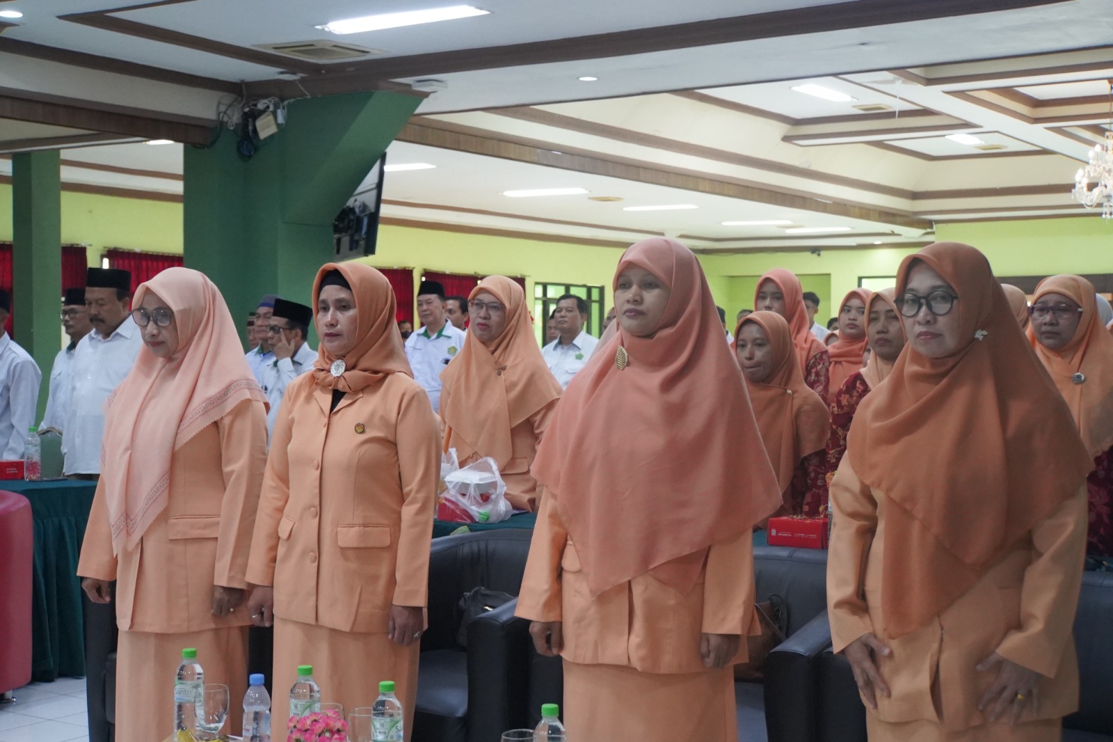 Dr. Muslimin memberikan informasi terkait kepegawaian, termasuk penambahan pegawai jalur PPPK, penguatan unit kerja seperti Prakom dan perpustakaan, serta keberhasilan perpustakaan meraih akreditasi A. Ia juga menyampaikan permohonan maaf dari istri yang sempat menjabat Wakil Ketua Dharma Wanita atas keterbatasan aktivitas selama masa kepengurusan.