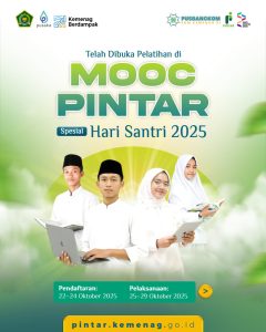 Ciputat (BMBPSDM) — Dalam rangka menyemarakkan Hari Santri Nasional 2025, Kementerian Agama RI melalui Pusat Pengembangan Kompetensi (Pusbangkom) SDM kembali menghadirkan program pelatihan daring dan gratis bertajuk MOOC PINTAR Spesial Hari Santri 2025.