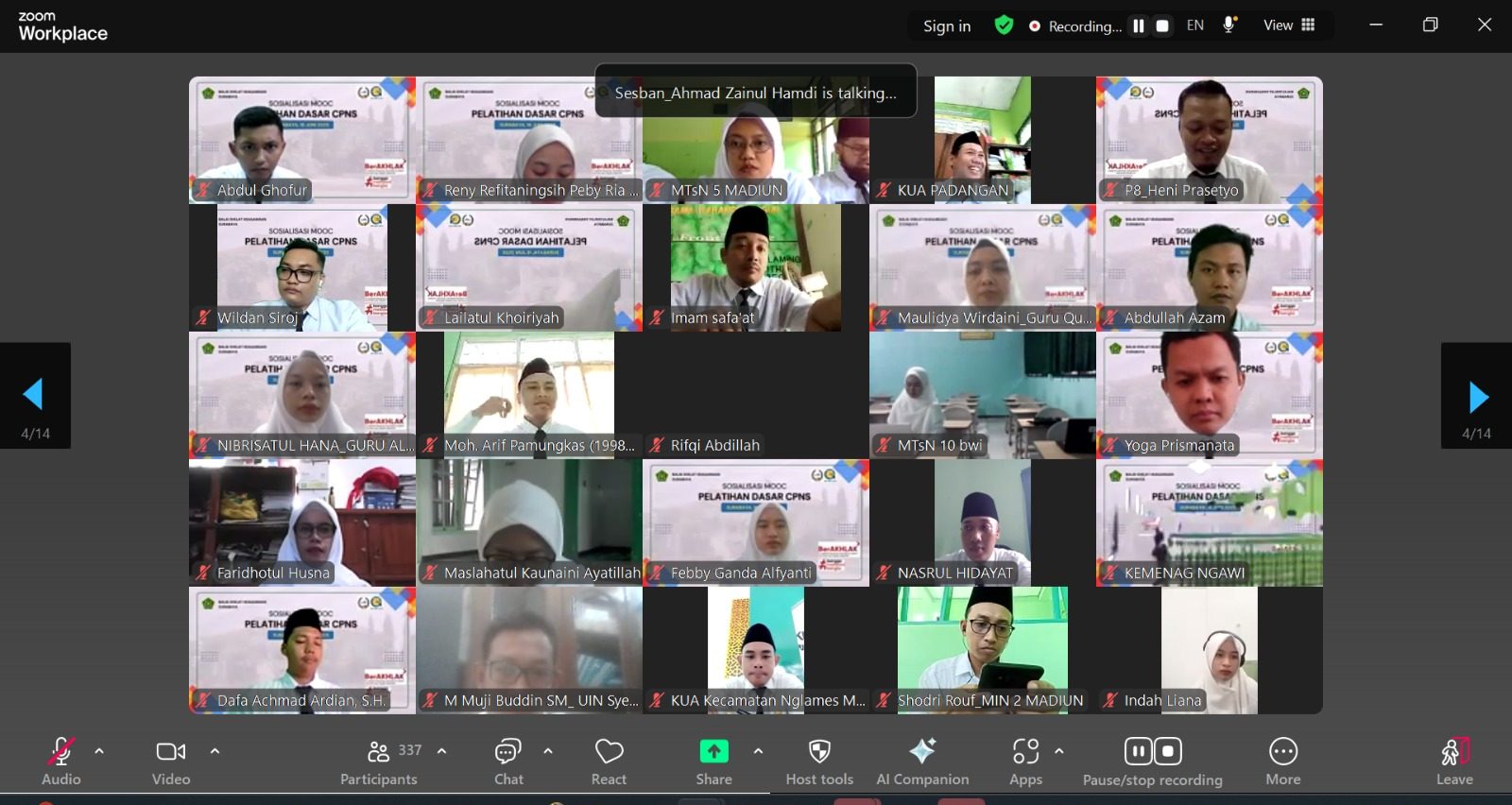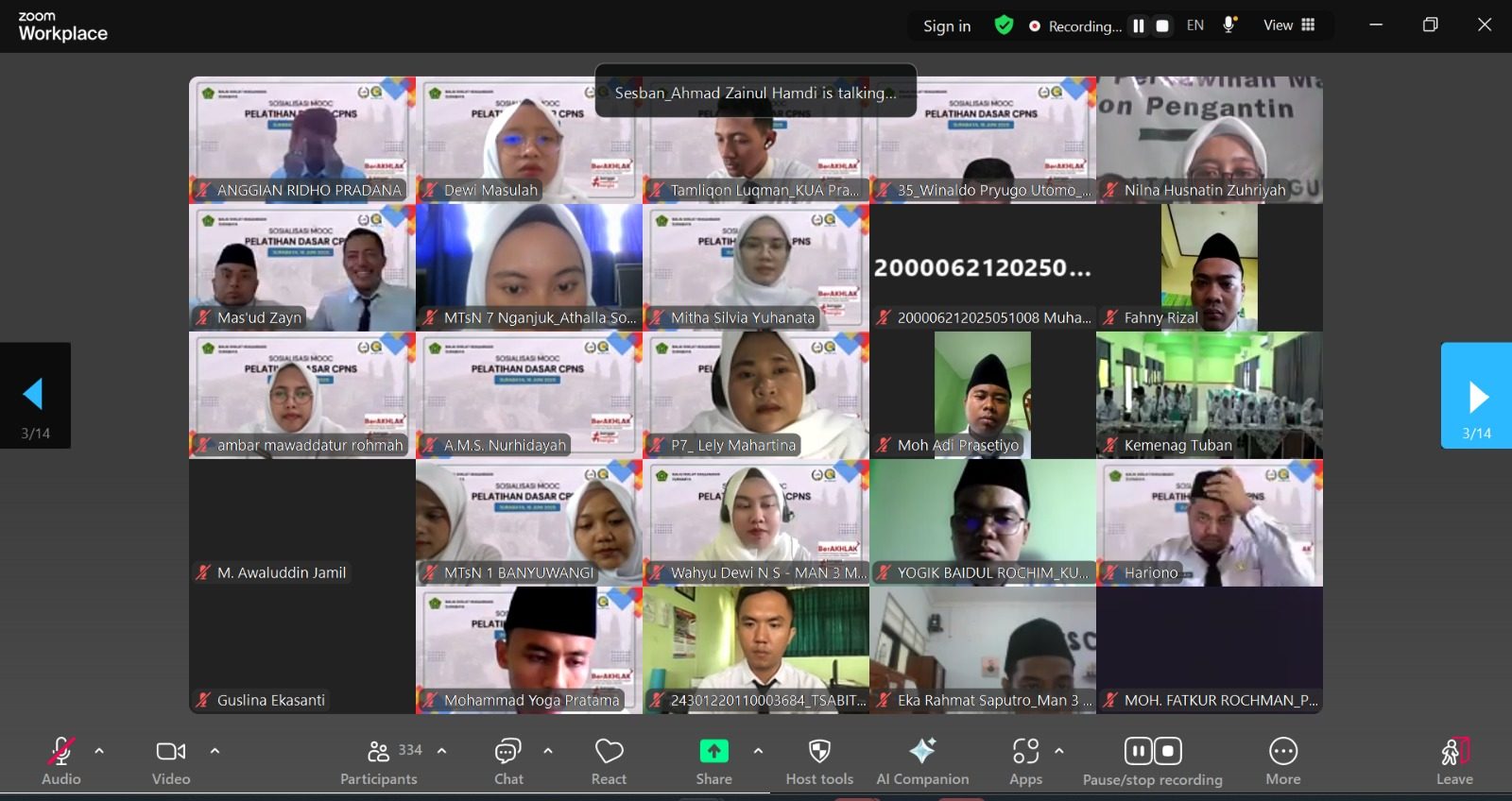Pernyataan tersebut disampaikan oleh Sekretaris Badan Litbang dan Diklat Kementerian Agama RI, Dr. Ahmad Zainul Hamdi, M.Ag., dalam sambutannya saat membuka kegiatan Pelatihan Dasar (Latsar) CPNS dan Sosialisasi MOOC sesi kedua yang diselenggarakan oleh BDK Surabaya secara daring pada Senin (16/6).