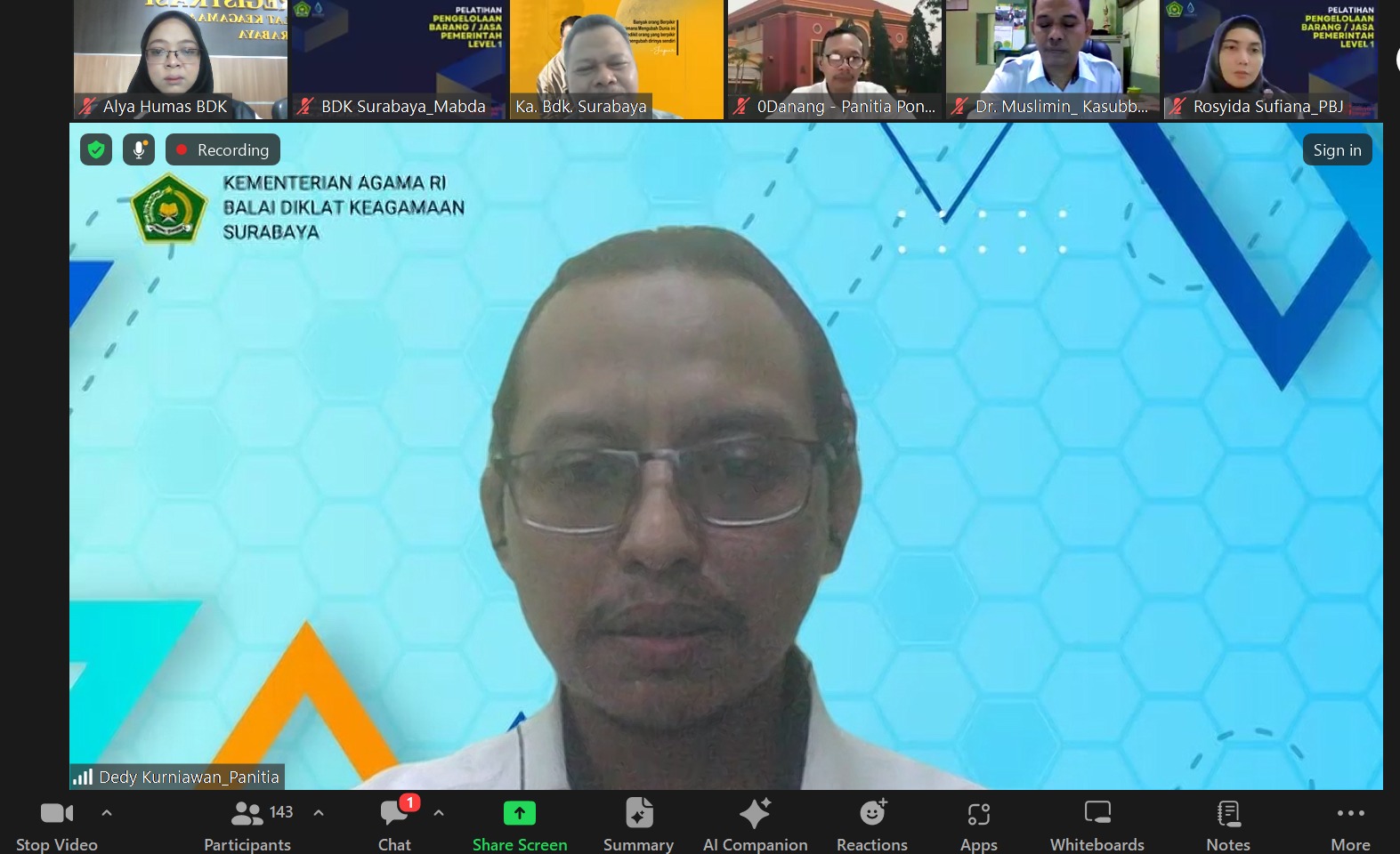 Tahap pertama dari pelatihan ini adalah sesi online langsung menggunakan platform Zoom yang berlangsung dari tanggal 8 hingga 10 Juli 2024. Format ini dirancang untuk memberikan fleksibilitas kepada peserta dalam mengikuti pelatihan dari lokasi masing-masing, memungkinkan mereka untuk berinteraksi secara langsung dengan instruktur dan sesama peserta meskipun berada di lokasi yang berbeda. Dengan teknologi video konferensi, peserta dapat mengikuti sesi dengan real-time feedback, diskusi, dan tanya jawab.