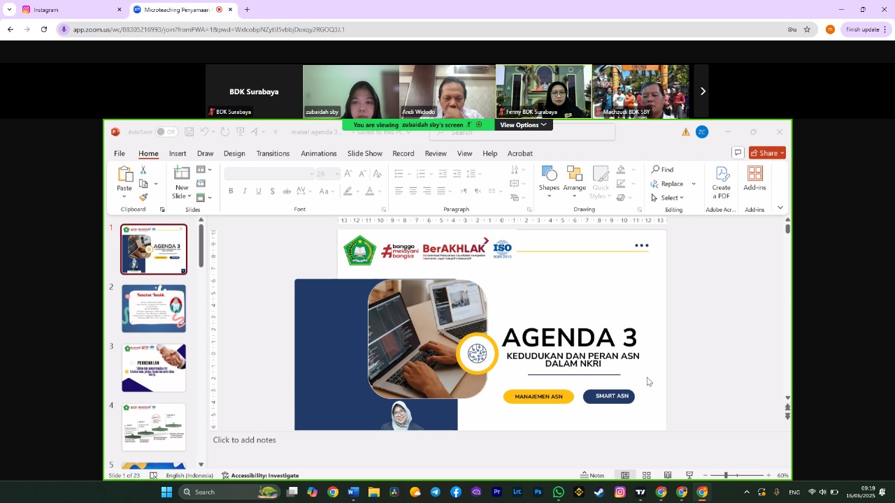 Surabaya – Balai Diklat Keagamaan (BDK) Surabaya terus menunjukkan komitmennya dalam mencetak aparatur sipil negara (ASN) unggul melalui penyelenggaraan microteaching bagi para widyaiswara yang akan menjadi fasilitator Pelatihan Dasar (Latsar) CPNS Tahun 2025. Kegiatan yang dilaksanakan pada Senin (16/6/25) ini dilaksanakan secara daring melalui Zoom Meeting dan dibagi dalam empat breakout room untuk menunjang efektivitas pembelajaran.